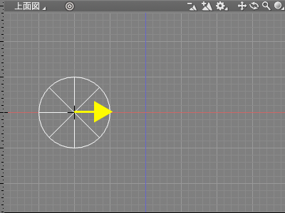 「上面図」をドラッグします。ドラッグしたラインを半径とする球が作成されます。