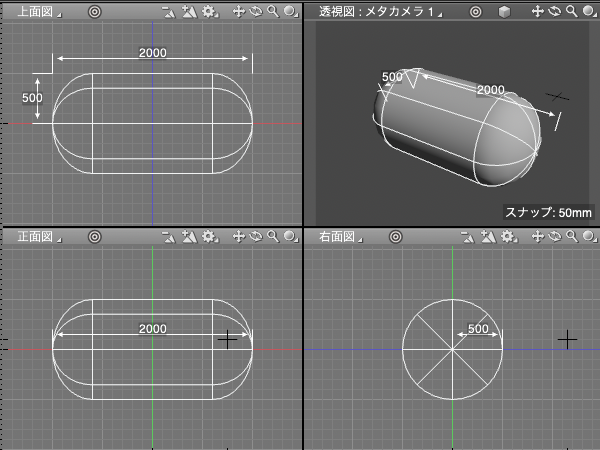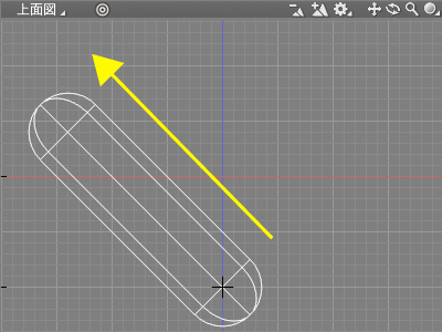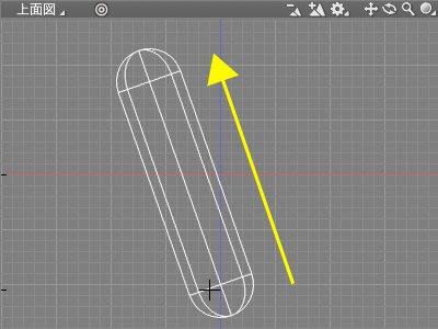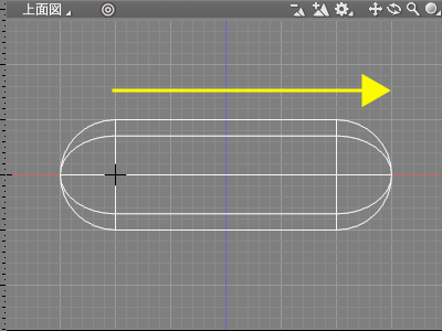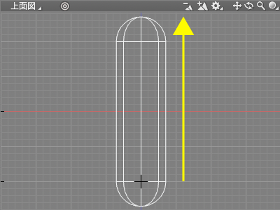 「上面図」を右にドラッグします。ドラッグした距離を高さとする「カプセル」が作成されます。