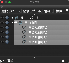 「一般」の場合は「閉じた線形状の掃引体」、「自由曲面」の場合は「自由曲面」と「閉じた線形状」2つを含む「パート」、「ポリゴン」の場合は「ポリゴンメッシュ」で作成されます。