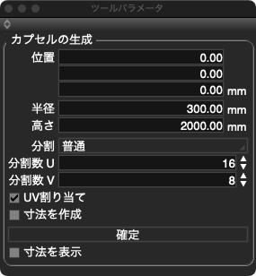 オンのとき、作成中の「カプセル」の半径、高さを図面に表示します。