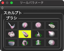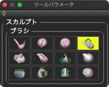 このチュートリアルではスカルプトモデリングで使用するブラシの効果をブラシごとに順に紹介していきます。