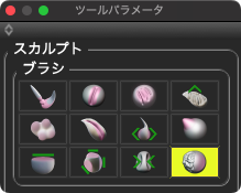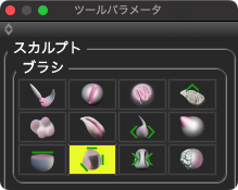 このチュートリアルではスカルプトモデリングで使用するブラシの効果をブラシごとに順に紹介していきます。