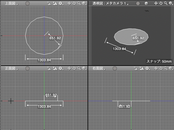 「上面図」をドラッグします。ドラッグの開始点を中心に、ドラッグした距離を半径とする「円」が作成されます。