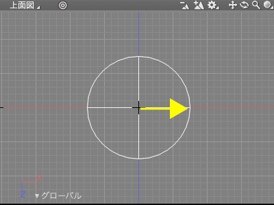 「上面図」をドラッグして底面となる円を作成します。ドラッグした距離を半径とする円が作成されます。
