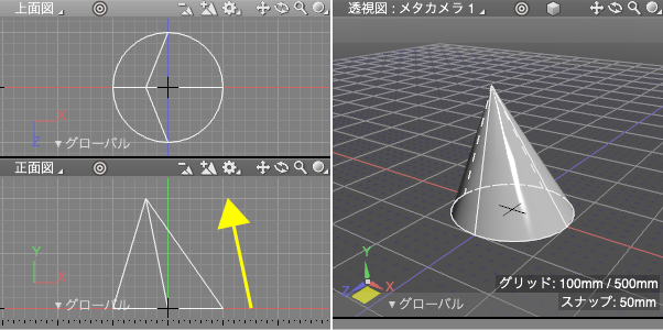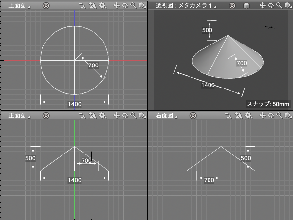 - 「円錐」を作成する