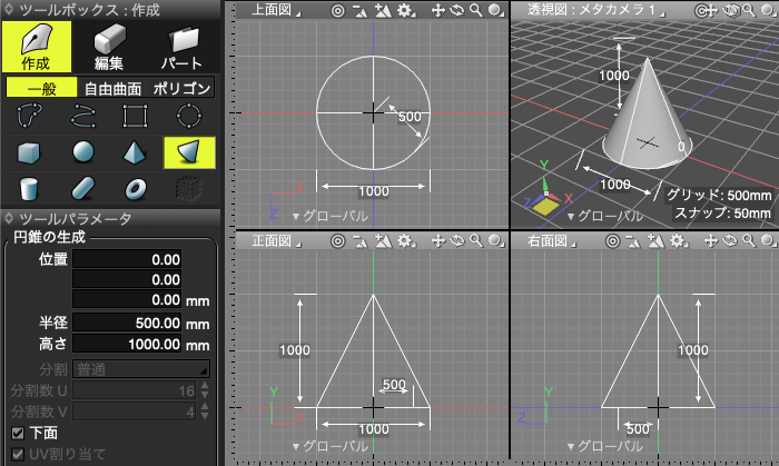 「円錐」を作成する
