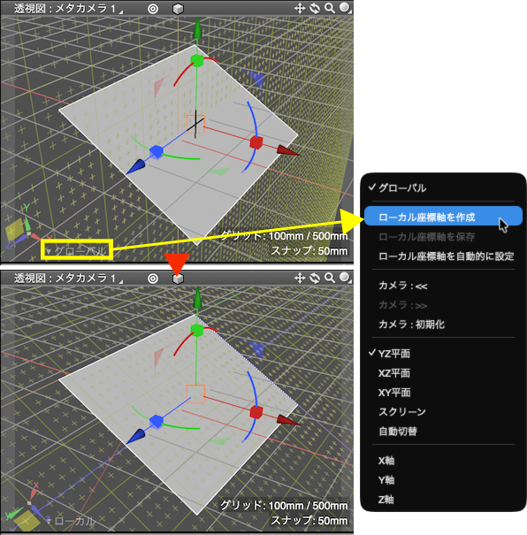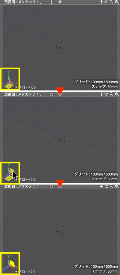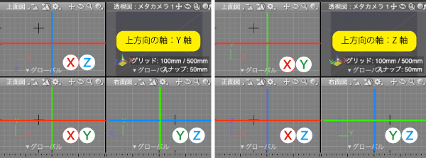 参考「新規シーン」では「透視図」の平面は「XZ平面」となっています。