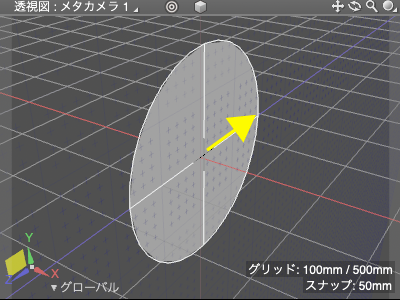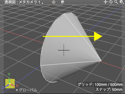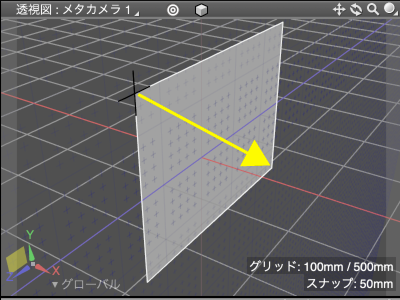参考透視図で各軸に垂直な平面上に形状を作成する