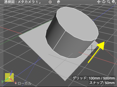 ドラッグが終わったら「透視図」で上にドラッグして円にドラッグした分の高さが設定された、傾いた平面に垂直な「円柱」を作成します。