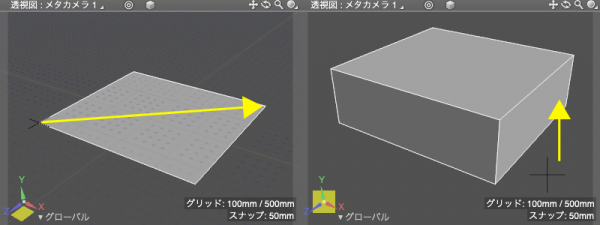 ドラッグした分の高さをもつ「直方体」が作成されます。