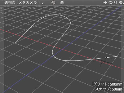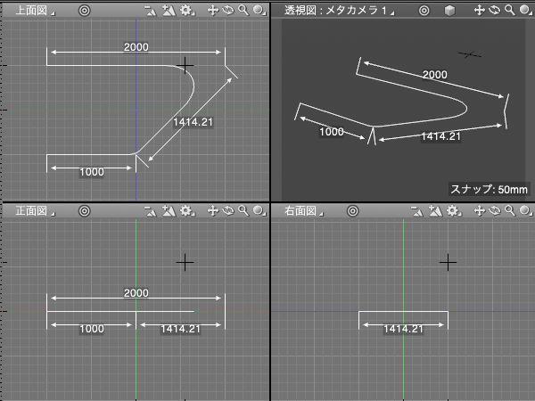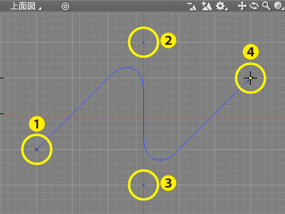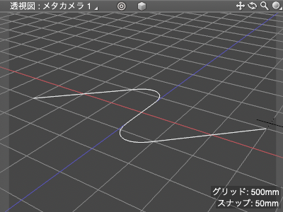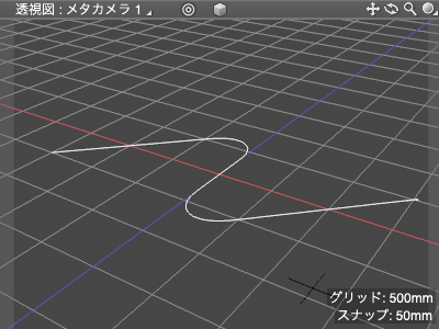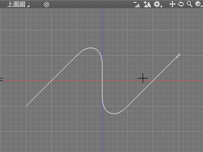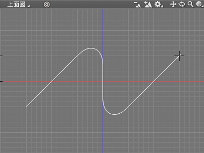 「上面図」でクリックしていくとクロソイド曲線による「道路線形」が作成されます。