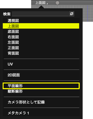 図面の「ナビゲーションコントロールバー」 > 「図面切り替え」ポップアップメニューから「平面線形」を選択して切り替えます。