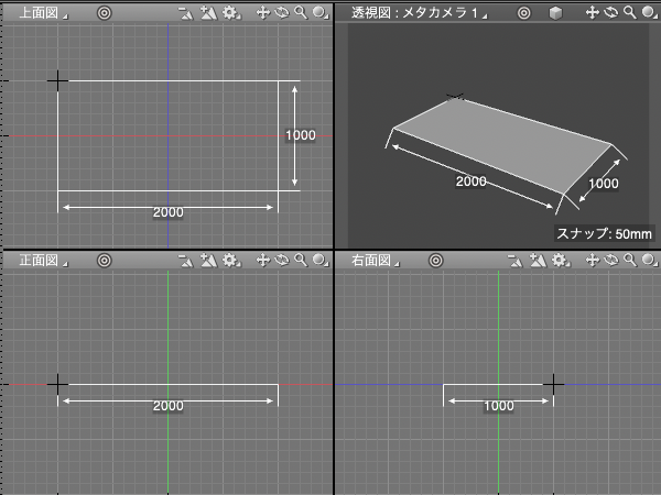 「上面図」で長方形を作成します。